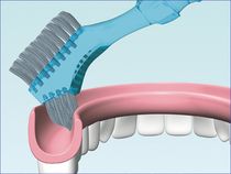 Con dos cabezas de cepillo: campo Pincel grande para la limpieza de las superficies exteriores de prótesis, y más pequeño cepillo de campo para los lados de difícil acceso interno Diseño ergonómico de los dedos mango