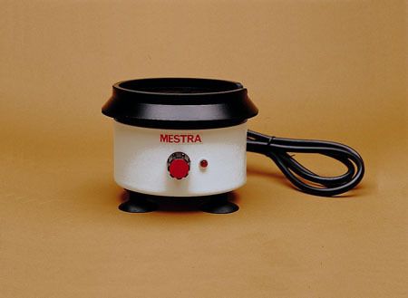 El cuerpo está fabricado en aluminio anodizado y pintado en blanco sobre ventosas adherentes. La superficie de trabajo es de goma sobre cuerpo metálico y lleva un rebaje de 30 mm para introducir la cubeta. Lleva potenciómetro, conmutador de regulación escalonada de vibraciones de – + y piloto luminoso de marcha.