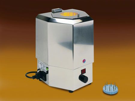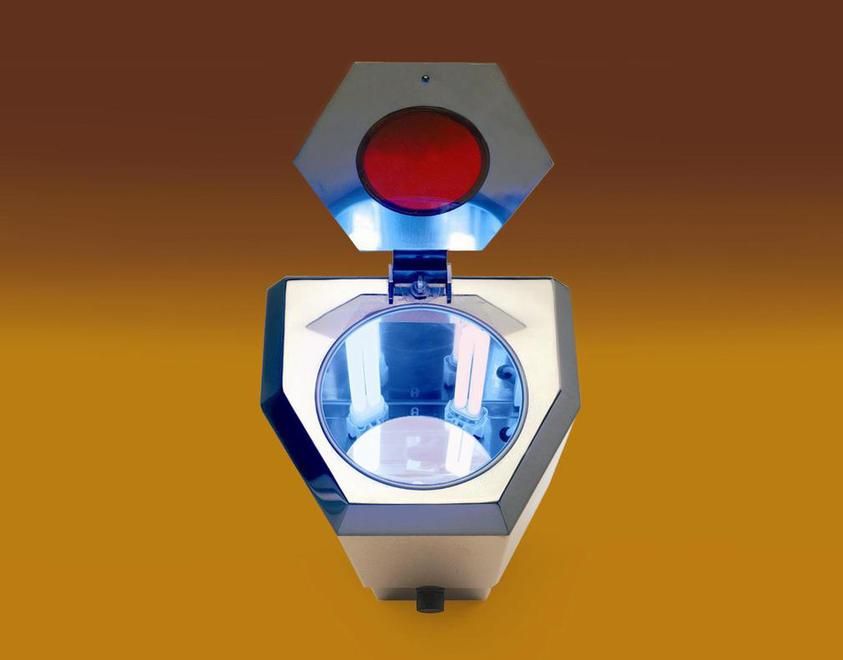 Lámpara Polimerizadora fabricada totalmente en acero inoxidable. Barre el espectro de luz ultravioleta comprendido entre los 280 y los 550 nanómetros, cubriendo casi todas las longitudes de onda empleadas en la polimerización de materiales dentales. Se trata de una herramienta de Propósito General imprescindible en el Laboratorio y la Clínica Dental. Entre sus principales características cabe destacar un control electrónico de tiempo con display digital, señal acústica de fin de ciclo, y programación mediante mando único de tipo “encoder” óptimo acceso al interior de la máquina a través de una puerta situada en la parte superior; aviso automático del cambio de lámparas (cada 500 horas de funcionamiento del aparato); soporte giratorio para conseguir una mejor distribución de la luz (ø 135 mm.) ; visión panorámica desde una ventana de tipo “ojo de buey” situada en la parte superior de la máquina; e interruptor de seguridad que apaga las lámparas cuando se abre la puerta. La lámpara polimerizadora Sun Beam se suministra con una práctica mesa soporte (Ref. MESTRA R-080550-50) y una bolsa con pines de sujeción.