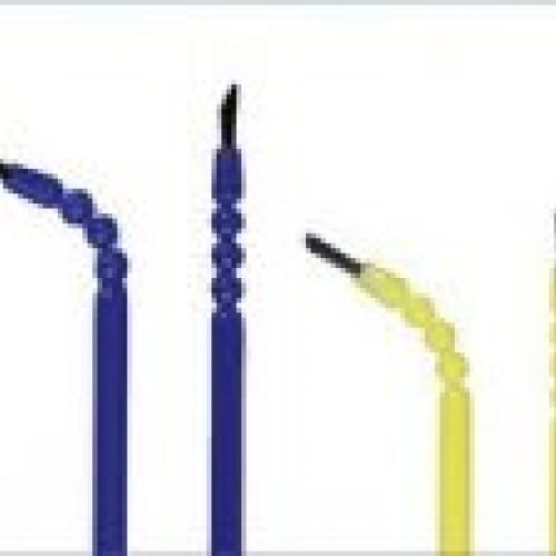 De una sola pieza pincel desechable Se inclina en cualquier ángulo: flexible Ahorro de tiempo: no cambiar de cepillo Seguro: no hay peligro de contaminación cruzada Mango amarillo = cepillo de punta, la aplicación exacta Mango azul = cepillo plano, las grandes superficies