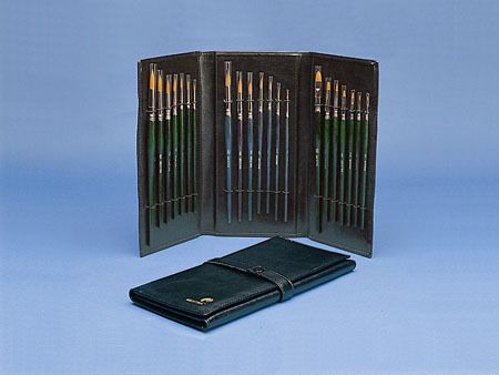 Completo surtido de pinceles que incluye unidades del tipo Redondo Marta Kolinsky; Redondo en fibra sintética Toray Oro; y Planos también en Toray Oro. Los números son: el 0, 1, 2, 4, 6, 8 y 10 para cada tipo, lo que hace un total de 21 pinceles. Están dotados de “efecto sonajero”. El set se presenta en un práctico estuche de imitación a piel.